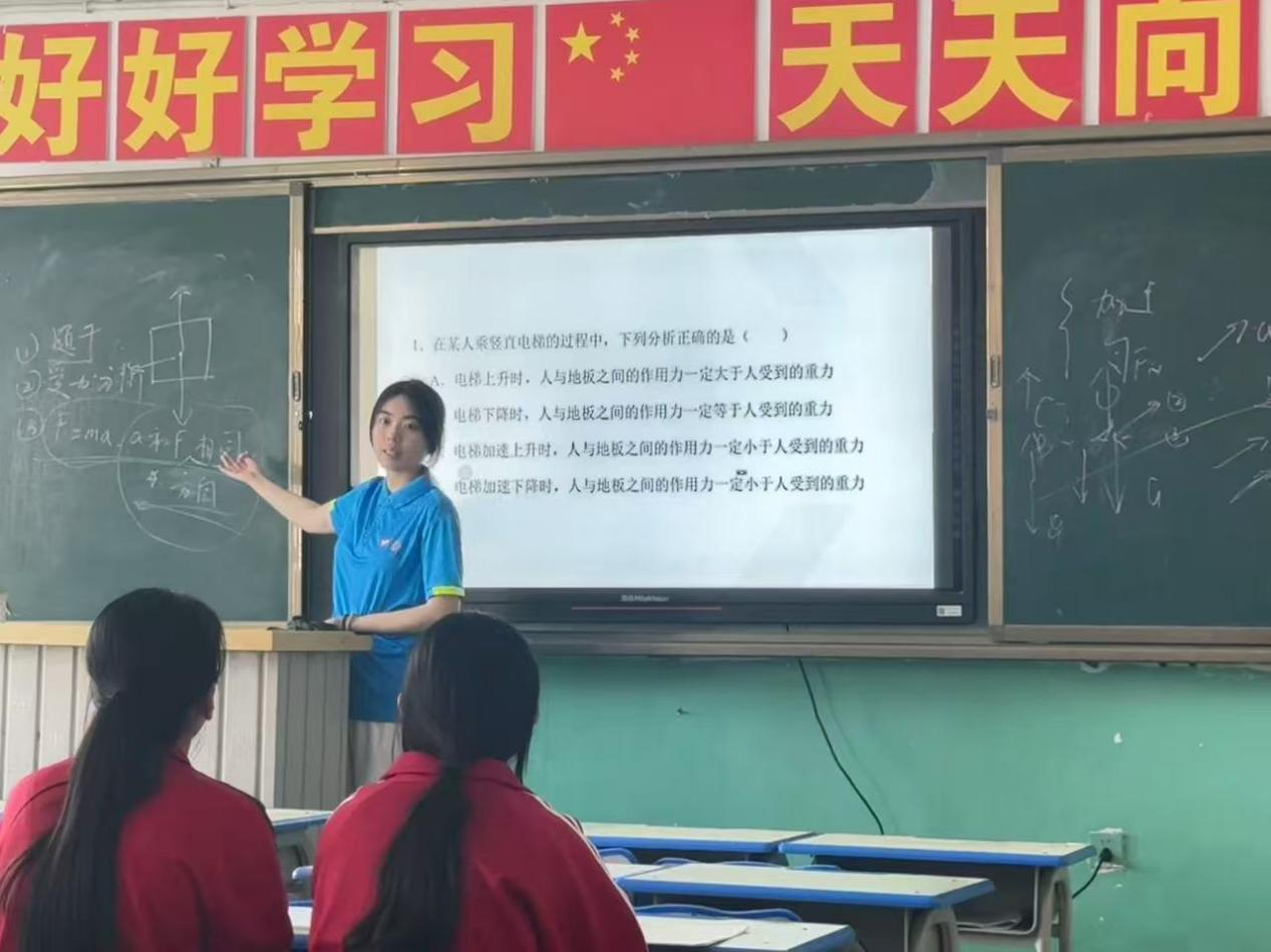 阎筱玥、贺心怡分别教授高一、高二学生必修课。贺心怡在物理课上将原理融入生活实例与实验,用通俗语言化解难点,提升课堂乐趣与参与度;阎筱玥在英语课借助情境互动环节,充分激发同学们的学习兴趣,在历史课中,以清晰时间轴串联历史事件,帮助同学们系统梳理知识脉络,让历史知识不再枯燥。