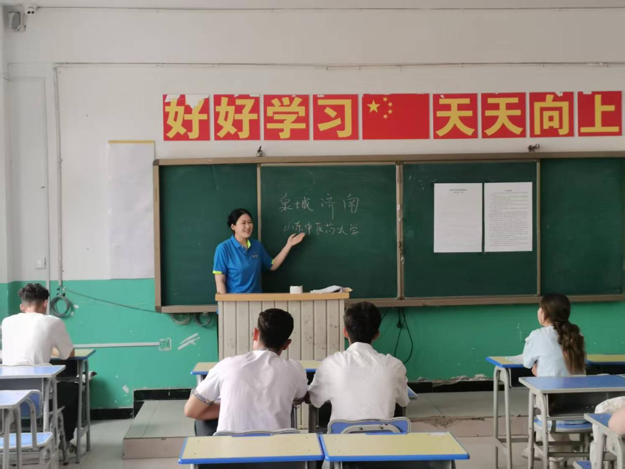 为全面贯彻党的二十大和二十届三中全会精神,深入贯彻落实习近平总书记关于青年工作的重要思想,在共青团山东省委与山东中医药大学团委组织下,我院辅导员吴晓琦带领阎筱玥、贺心怡两位同学,跨越4500余公里,于7月21日到达新疆维吾尔自治区喀什地区英吉沙县第一中学,开展为期14天的志愿支教活动,将知识与希望播撒在祖国西部边疆的土地上。